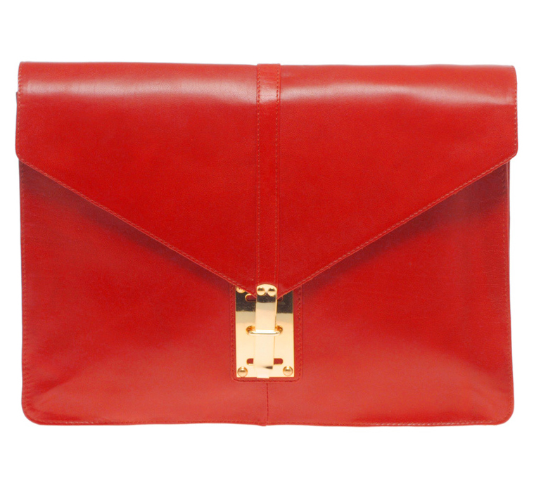 Love. Love the orange scarf, love the clutch, love the hair, LOVE. (I love her husband’s blue tie as well, while we’re on the subject!)