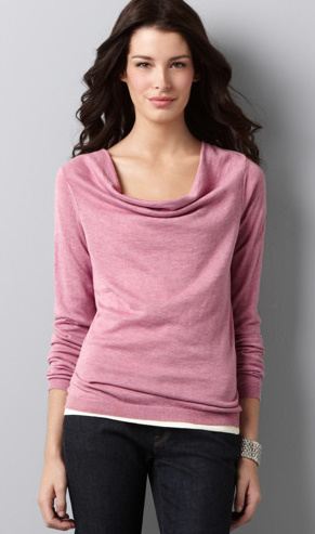 I have this Drape Neck Sweater and I love it! Its as comfy as a t-shirt but looks much nicer. It was $49. Then it got marked down to $35. With the sale? Its now $17.50.