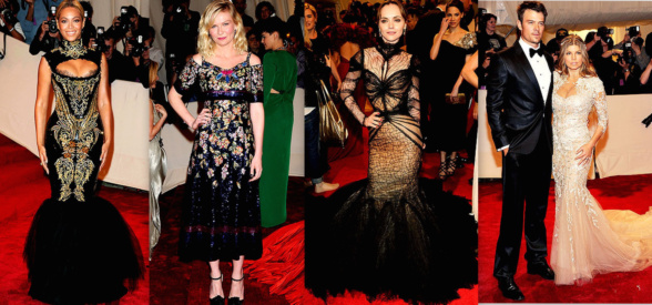 Probably my favorite look of the night was the super-stylish expectant mom Jessica Alba was radiant on the red carpet at the Metropolitan Museum of Art Costume Institute Gala in New York City on Monday (May 2). The 30-year-old actress was glowing in a Ralph Lauren Collection custom platinum lamé strapless bustier gown with crystal-encrusted silk tulle overlay and a matching bag.