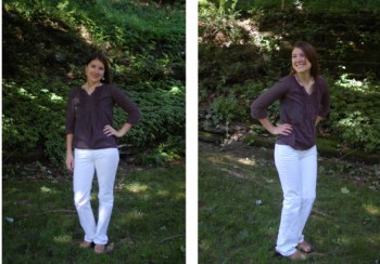 These white boot cute jeans were picked up on clearance at the LOFT Outlet two years ago and have proven to be one of my best purchases. Wear them constantly! The gray tunic is from Target, as are my wedges which I got last summer. My earrings and necklace are both from Stella & Dot: the Rivera Coin Earring and the Signature Dot Disc Necklace. I wore the necklace wrapped around twice instead of long – even though I bought it to wear long, I actually prefer it that way instead!