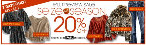 Fall Preview Sale – take 20% off new fall arrivals with the code FALL. Warning. This sale is AMAZING. Brace your credit cards.