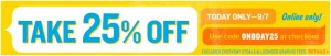 Use coupon code ONBDAY25 to receive 25% off through end of day September 7th.