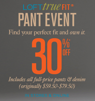 And right now, LOFT is offering 30% off all pants in stores and online. So go on in and find your perfect fit and stock up for fall!