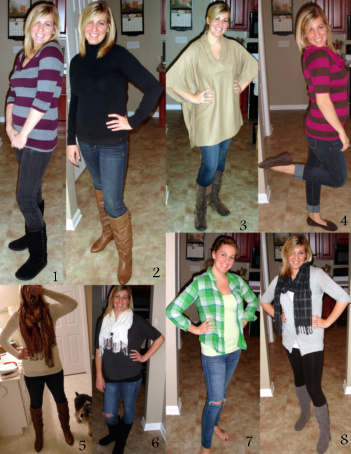 8. cardigan from Coco & Lolly {no longer in business}, tank from Motherhood Maternity, leggings from Express, boots from BS, scarf from AEO