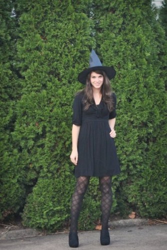 What Nicole Wore: Take a dress from Express (about 5 years ago), patterned tights from H&M, black suede booties from Target (similar style) and a $2 witch hat from Target and you’ve got a witch! I wore this handing out candy to trick-or-treaters. And the best part is that I used what I already had in my closet with the exception of the $2 witch’s hat!