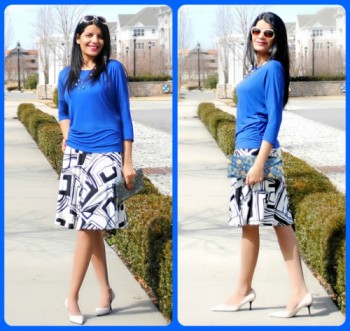What Jyoti Wore: Skirt – Cache (2008 purchase), Blue Top (Forever 21) Pumps (Nine West) Clutch (DSW)
