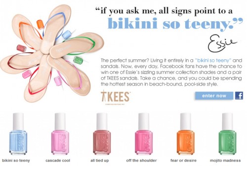 Finally, FINALLY someone came up with this idea! Flip flop maker Tkees has partnered with Essie to make sandals that perfectly match their Essie summer collection, Bikini So Teeny! They’ve been a little hard to find, but I found them in stock here! And don’t forget to enter at Essie’s facebook page to win the collection – there are instant winners daily!