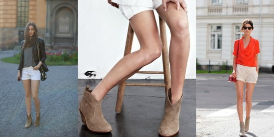 1. A nude bootie with short shorts elongates the leg and gives you a trendy edge to an otherwise traditional silhouette. Picture these outfits with a pair of flip flops instead and tell me that boots are not the piece that makes the outfit!