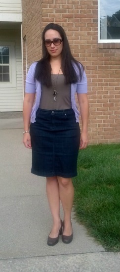 What Cita Wore: shoes from naturalizer, bought at a thrift store, jean skirt and tank top both from Costco (I was surprised too!), shrug, necklace and bracelets were all gifts from Perú and Spain, earrings from Ann Taylor and sunglasses also from a thrift store.