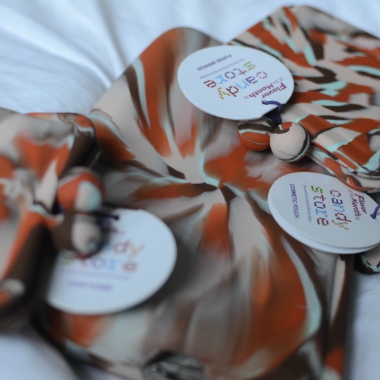 Candy Store is now featuring the ‘Flavor of the Month’ program that launches a new color collection each month, inspired by ice cream flavors. They come in Cosmetic Pouches, Coin Purses & purse mirrors and range in price from $10-$20. The November flavor is Spumoni (brown, orange, green) and it is YUMMY!!