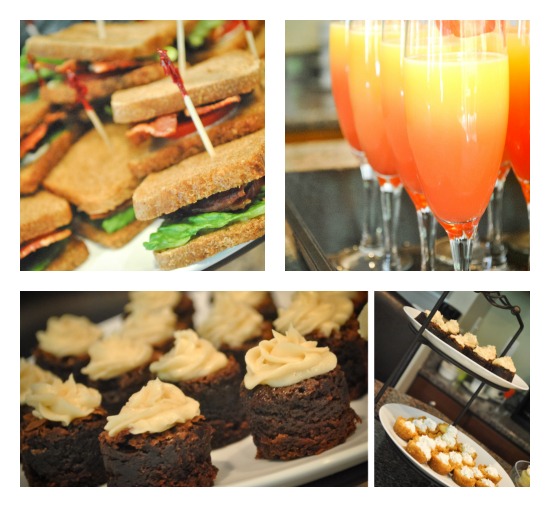 The menu included tiny tea sandwiches, summer squash orzo and a fresh garden salad were accompanied by these delightful strawberry mimosas. And followed by an array of petit fours including caramel frosted brownies, key lime tarts and mini cupcakes.