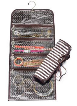 Henri Bendel BROWN & WHITE STRIPE JEWELRY ROLL