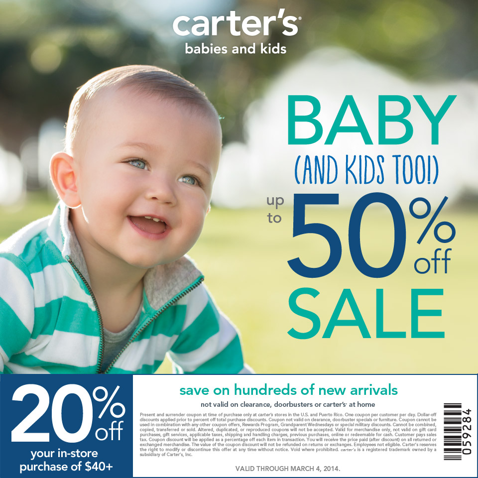 Need more inspiration – check out my #CartersSpringStyle pinboard for more ideas! Buy some cute spring duds online or head to your nearest store (use Carter’s store locator – I’m lucky…mine in only five miles away)! Prices are amazing right now: The Carter’s Baby and Kid Up to 50% Off Sale going on until March 4.  Clothing items from Carter’s spring collection are up to 50% off in store, and the included coupon provides an extra 20% off your in-store purchase of $40 or more. This is the perfect time to stock up on essentials!