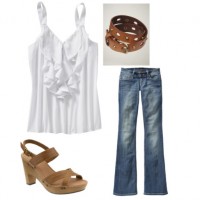 The Top: Comfy and Casual Ruffled Charmeuse Top by Old Navy $26, Skinny Mini Flare Jean by Old Navy $36, Mini Messenger Bag $20, Platform Sandals by Old Navy $24 A little dressier... Pleated Charmeuse Shorts $26, 3/4 Sleeve Cardigan $25, Crochet Cross-Front Wedges … [Read more...]